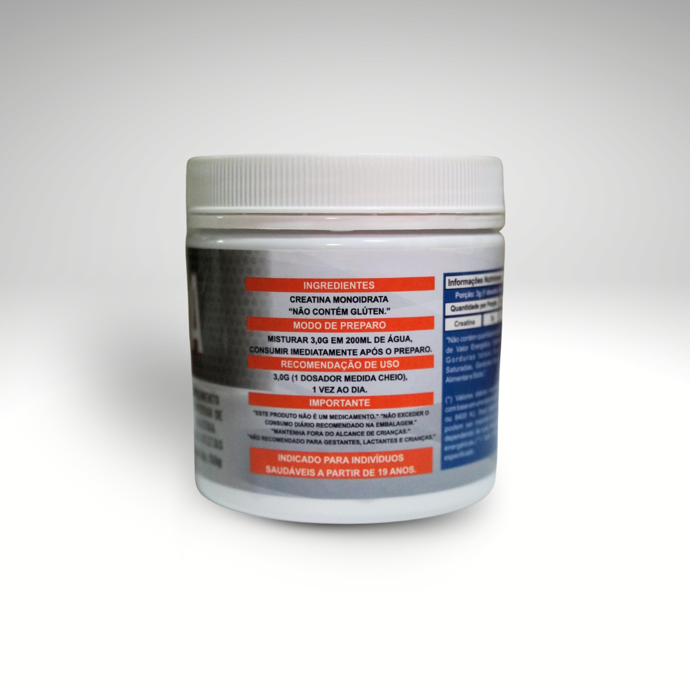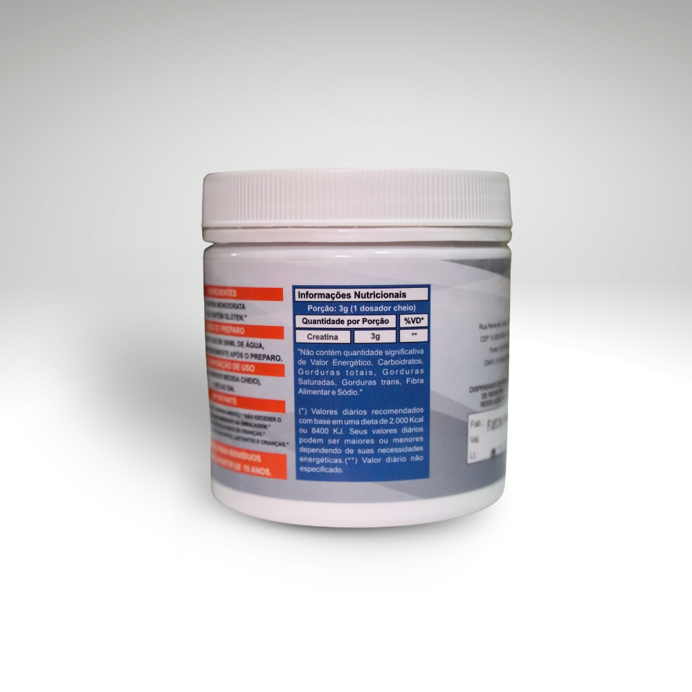 Suplemento alimentar de creatina para atletas. Creatina monoidratada, Não contém Glúten.